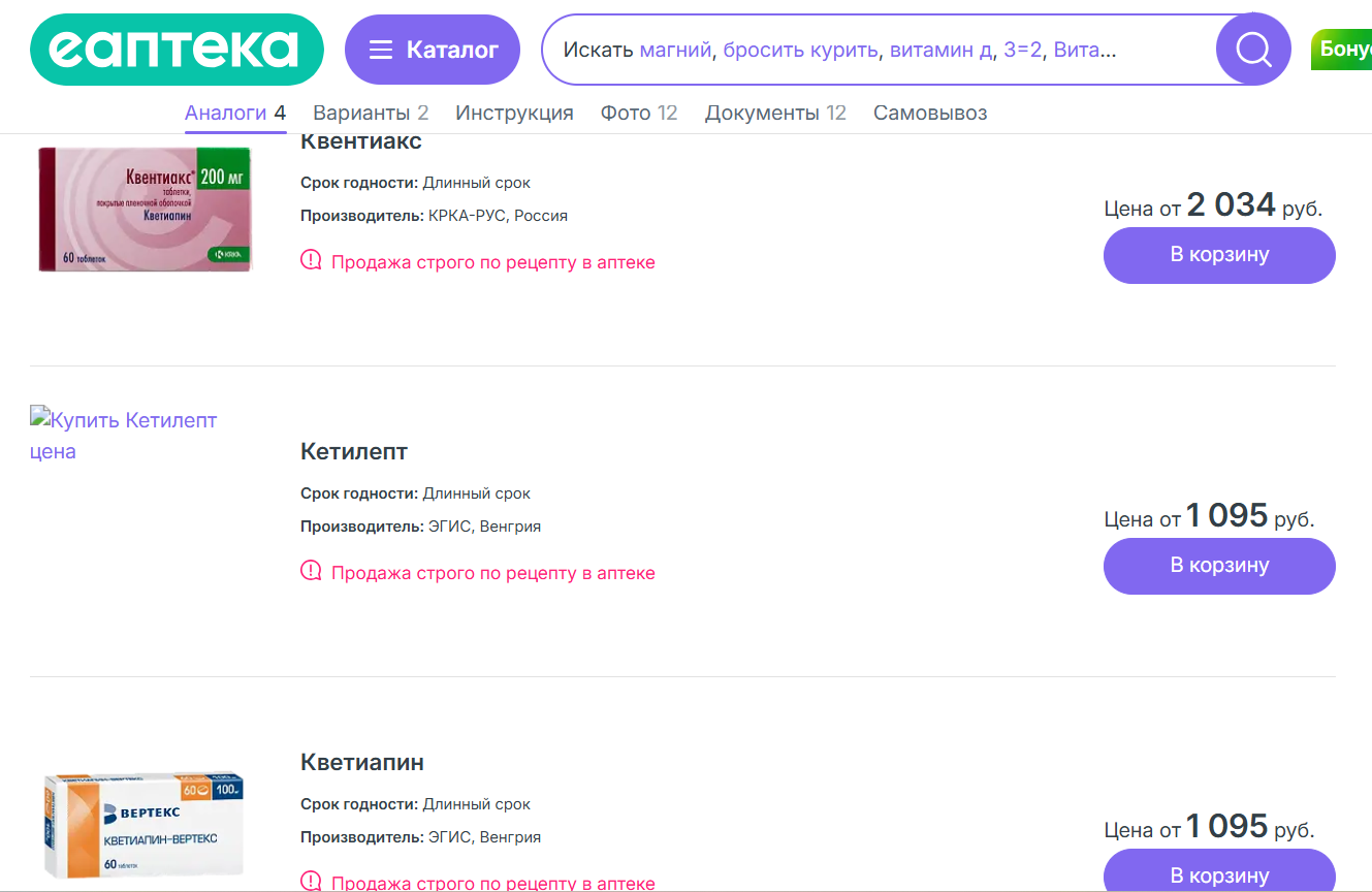 Отсутствует и аналог — «Квентиакс пролонг». Проверка аптек Владивостока показала, что данных средств нет даже у поставщиков. Как отметила фармацевт Наталья, мелкие аптечные точки и небольшие сети обычно отказываются от заказа таких рецептурных препаратов.