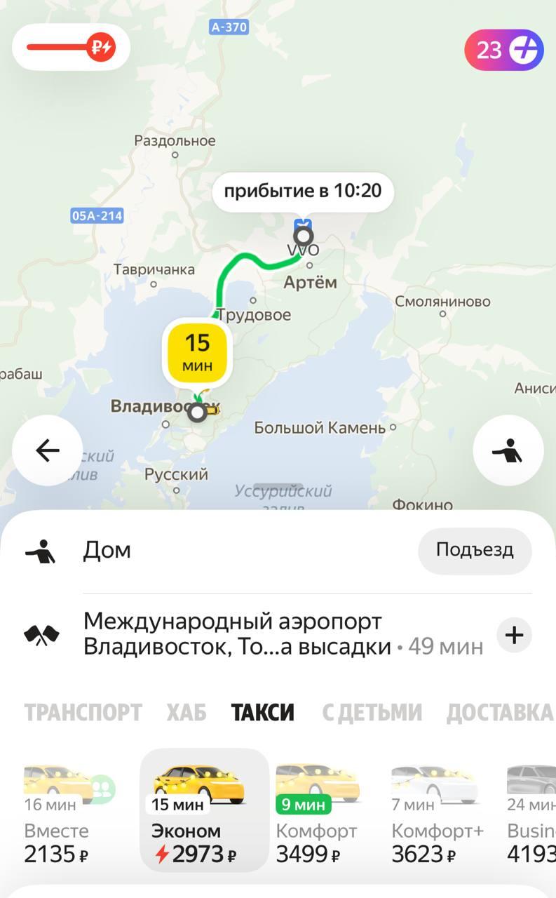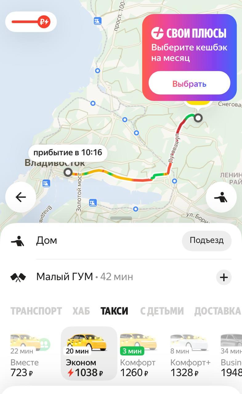 Например, поездка от улицы Русской до Светланской, 33 оценивается в 1200 рублей, а время в пути составляет от 55 до 80 минут.
